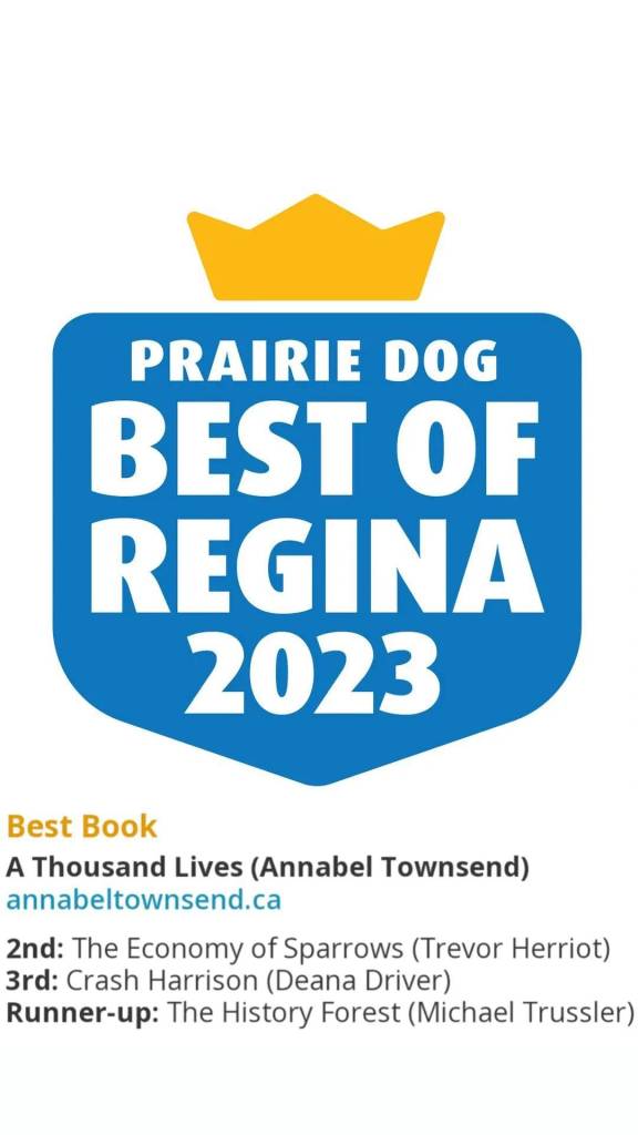 ‘A Thousand Lives’ won Best Book in the 2023 Prairie Dog Best of Regina Awards!